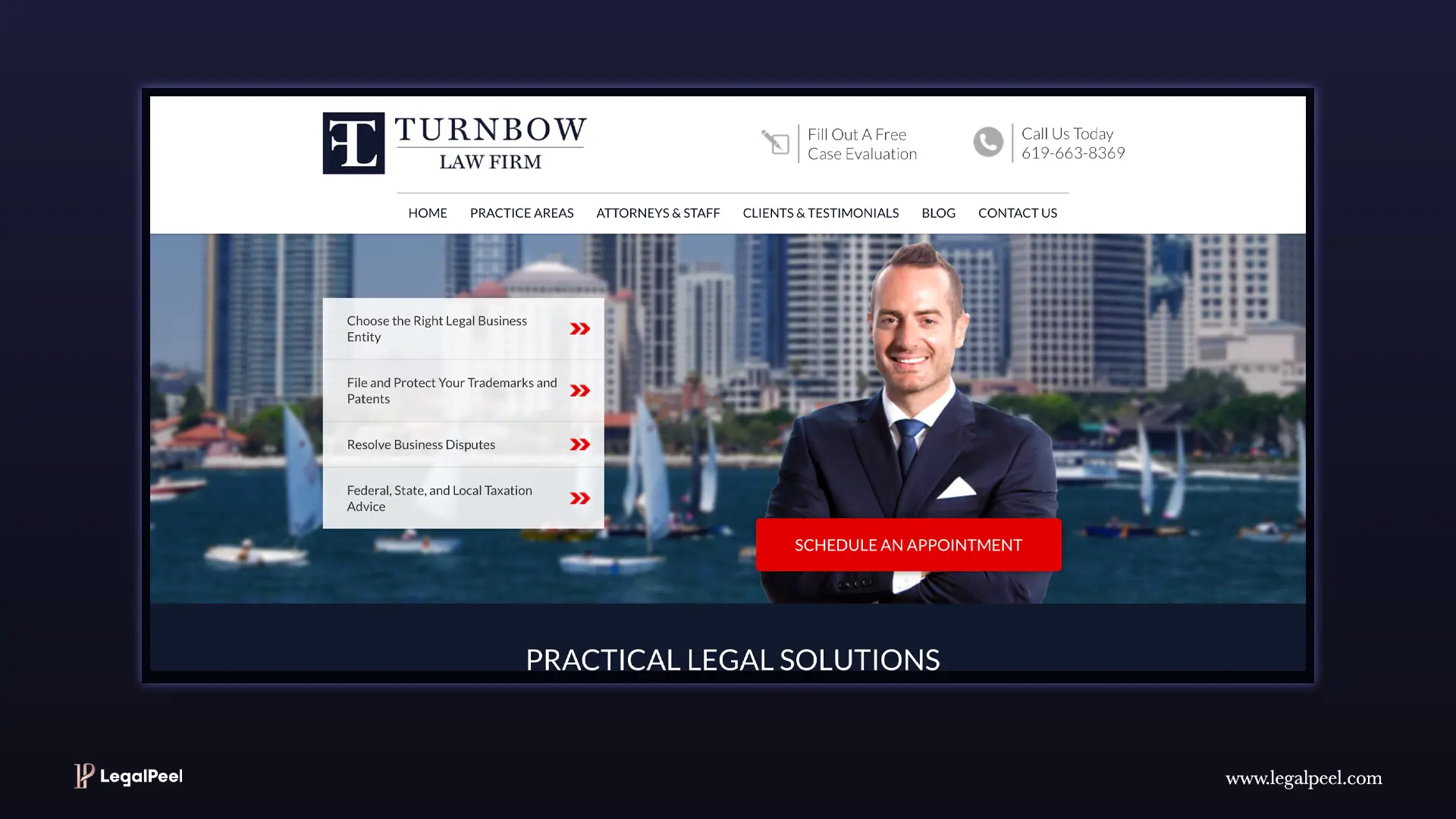 Their website features only important sections on the homepage, like hero sections, ratings and reviews, clear practice areas, and testimonials.